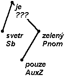In the tree structure the particle having the function AuxY depends on the predicate of the clause in question. If more words belonging together are involved (přece jen (although), ať už (be it), rather than two independent particles - například kupodivu... - for instance, strangely enough), one gets suspended from the other, the higher position taken by the first in the sequence