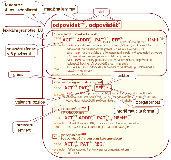 Slovník VALLEX (v návaznosti na teorii FGP) zachycuje